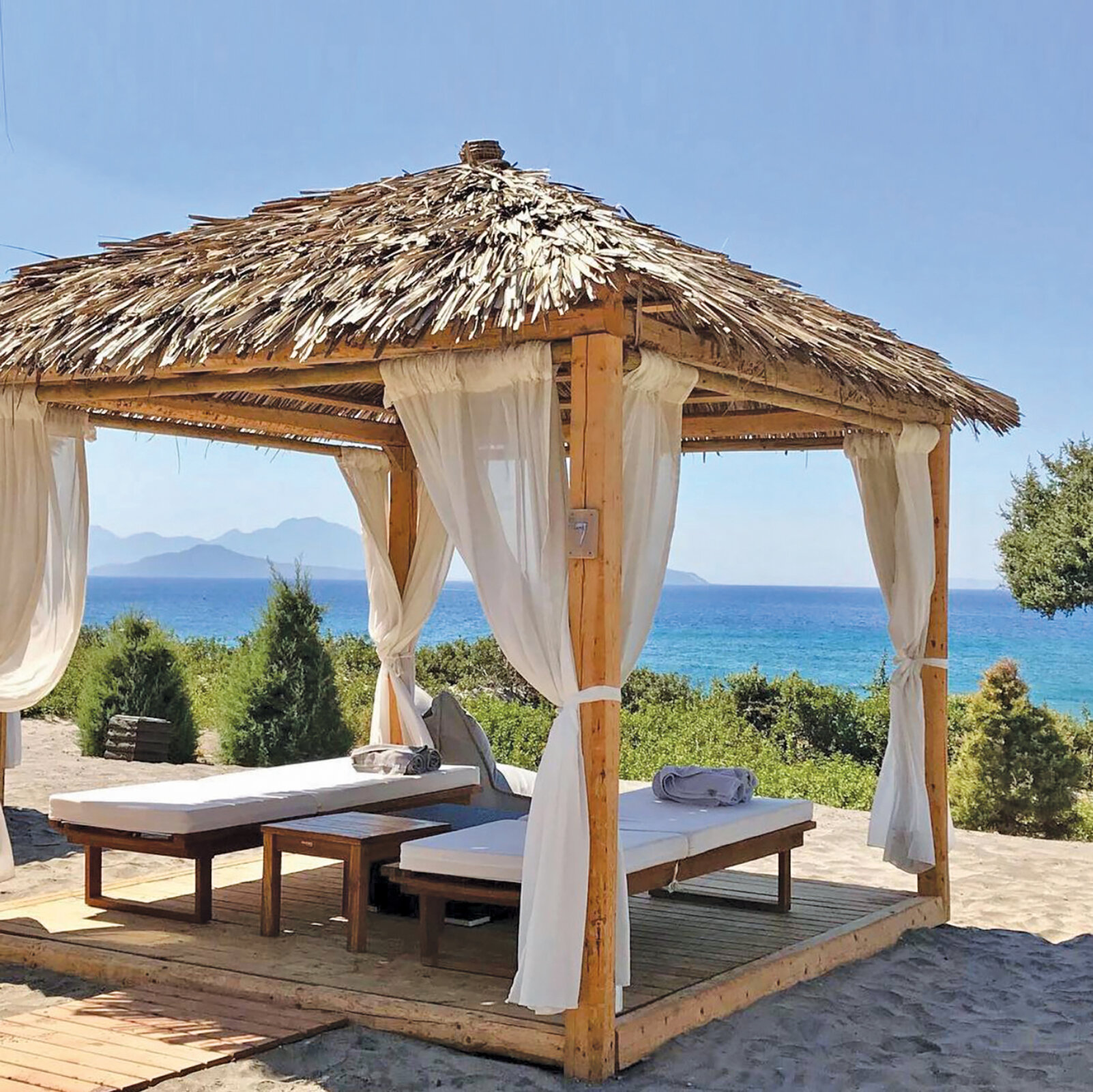 Ξύλινο κιόσκι 220×220, με κουρτινάκια, κατασκευασμένο από ελληνικό πεύκο, βαθέως εμποτισμού.