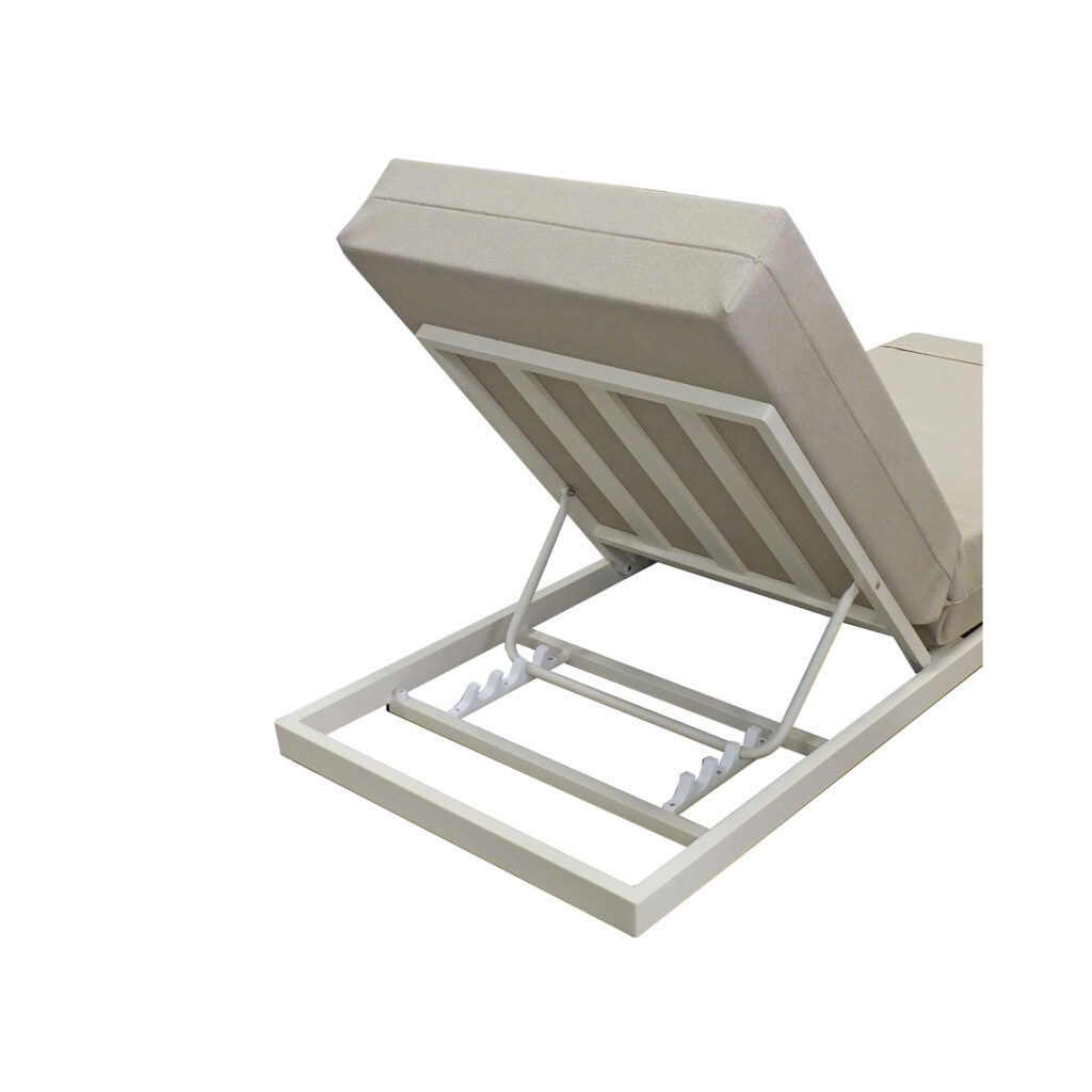 Ξαπλώστρα MILANO, με σκελετό από αλουμίνιο, βαμμένο με ηλεκτροστατική βαφή και μαξιλάρι 18cm με αφρολέξ και ακρυλικό ύφασμα ή δερματίνη της επιλογής σας.