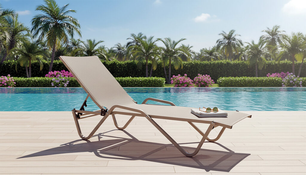 Ξαπλώστρα με σκελετό αλουμινίου βαμμένο μεηλεκτορστατκή βαφή και ύφασμα PVC 2Χ1 590gr/m2.